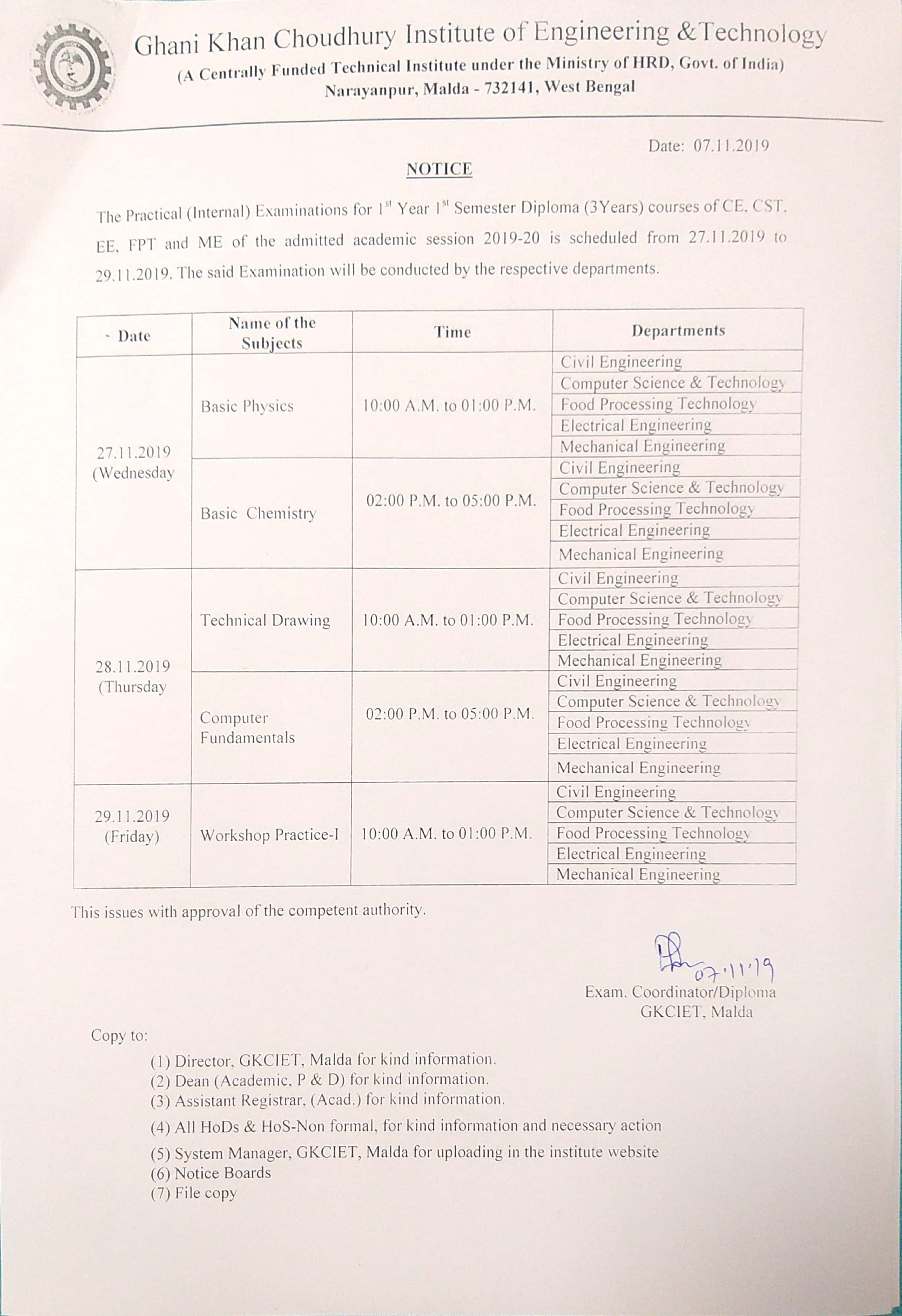 Notice for practical exam( internal) 1st year 1st Sem Diploma