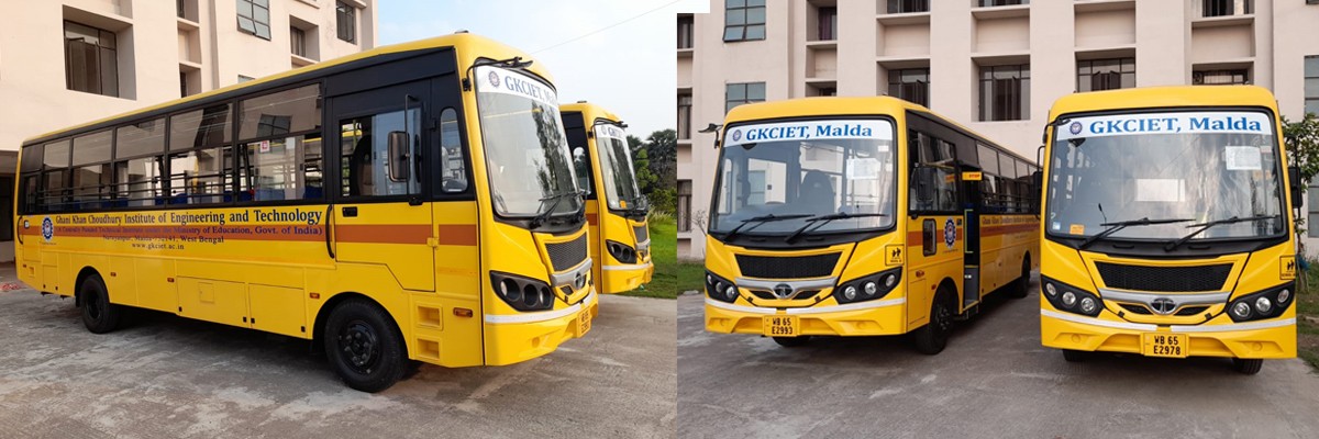 The institute provide bus facility from Malda Town from two pick up points — Rathbari and Arabinda Park (Archana Chatrabas). Two buses start at 8:10 am and 8:00 am respectively for the up journey towards College and reach college at around 8:40 am. The buses are of 50 capacities each. The buses start their down journey with the students at 4:30 pm and 5:00 pm respectively.